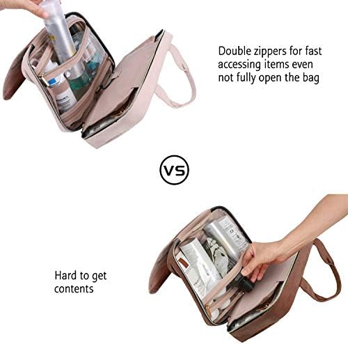 Large Capacity – 12.6 x 9.1 x 4.3 inch (fold); 12.6 x 33.5 inch(unfold) 4 separate compartments with zip and back open pocket for great organization. Suitable for your family trip to pack all men, women , and kids toiletries