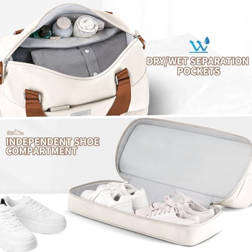 Separate Shoes Compartment: The weekender bag has a independent shoe cabin, which can accommodate 2 pairs of shoes or dirty clothes. even the shones gets dirty, it will not stain other items, provide great help during your travels and after exercising.